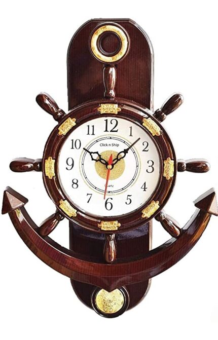 Click n ship Pendulum Plastic Wall Clock for Home (Size 36cm 27cm 7cm) (Brown, Small) (Brown)