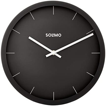 Amazon Brand – Solimo 12-inch Contemporary Plastic & Glass Wall Clock – Designer (Silent Movement, Black Frame)
