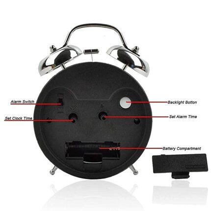 Sendrose Alarm Clock Brass Vintage Twin Bell Table Top Alarm Clock with Night Led Light Display Alarm Clock for Bedroom Heavy Sleepers Kids and Students (Silver)