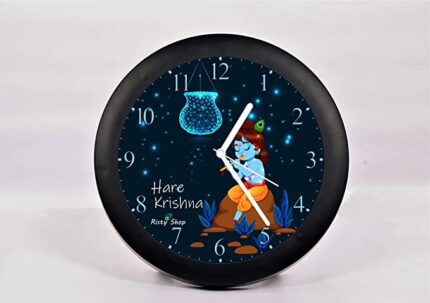 Risty Shop Plastic Analog Designer (Style-Hare Krishna) with number Table Clock , Smooth Movement, Sleek design, Black colour polished Plastic Case, Black