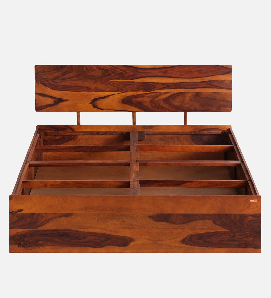 Comet King Size Upholstered Bed With Box Storage In Exotic Teak Finish