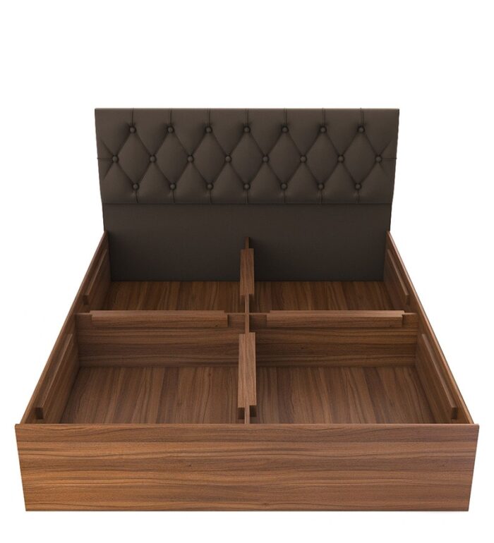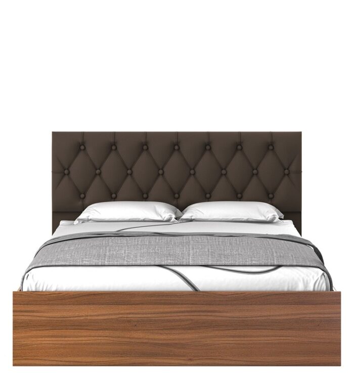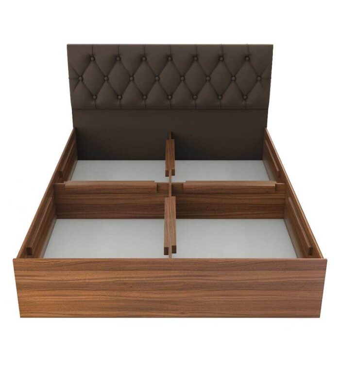 Comet King Size Upholstered Bed With Box Storage In Exotic Teak Finish