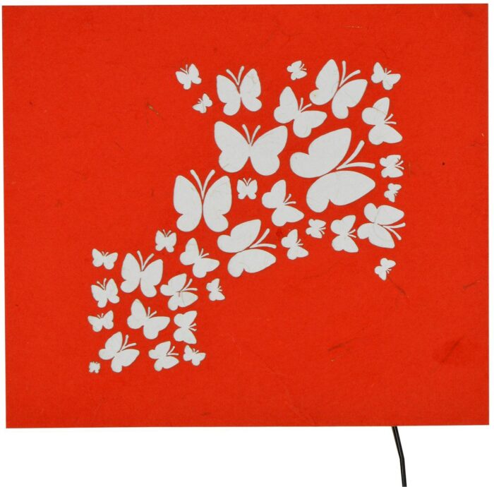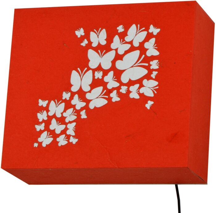 product specification keySales Package, valueWall Lamp with Electric Fitting, keyNumber of Contents in Sales Package, valuePack of 1, keyType, valueWall Lamp, Night lamp, keyColor, valueRed, keyWith Shade, valueYes, keyLamp Shade Material, valueAcrilic Sheet with Handmade Paper, keyBulb Type, value1 X 0.5 W, keyAssembly Required, valueNo, keyModel Name, valueFlying Butterfly Square, keyModel Number, valueCSWL-2, keyPower Source, valueAC, keyWidth, value22 cm, keyHeight, value20 cm