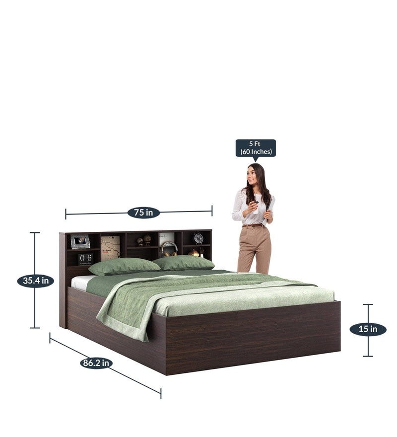 Electra King Size Bed With Box Storage In Choco Walnut Finish