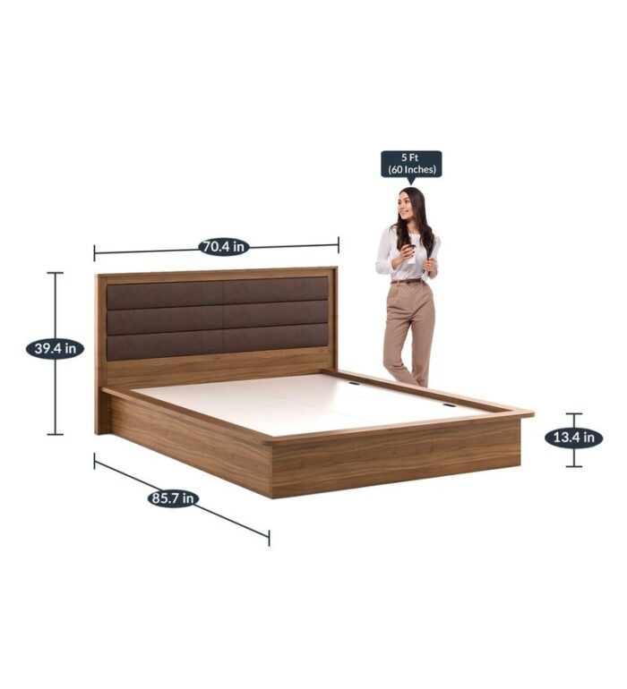 BrandSpacewoodDimensions(In Inches)H 39.4 x W 70.4 x D 85.7Weight155 KGWarranty36 Months’ WarrantyAssemblyCarpenter AssemblyPrimary MaterialEngineered WoodRoom TypeBedroomStorageBox StorageSeating Height13.4Recommended Mattress Size78 L x 60 W InchProduct Rating4.5Dimensions (In Centimeters)H 100.1 x W 178.8 x D 217.7