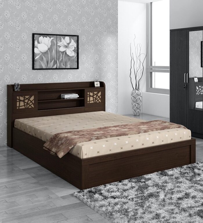 Kosmo Mayflower King Size Bed With Box Storage in Vermount Woodpore Finish