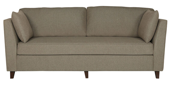 Specification GeneralFrame- Pine Wood/9mm plyUpholstery-Polyester FabricSeat Foam- 32&26DBack Cushion-Racron Polyester Fabric fiberSeat- Elastic Belt-70mm & Zig zag springLegs-White ash wood with walnut polish.Throw cushion-2 nos.