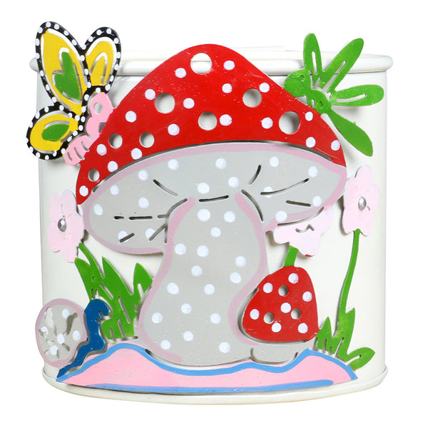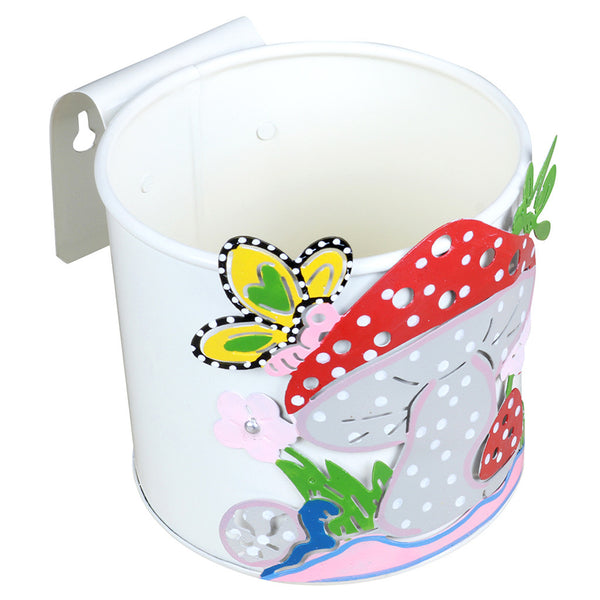 Description :Beautiful Metal hand crafted and hand painted railing planter / put / container / flower pot with pretty mushroom design on it. This can be hung on any railing easily. It is very durable and can be hung inside or outside your home. It is perfect for gifting. Flowers not included.Specifications :Material : MetalColor : White/RedSize L x w x h in Inches : 5.5 x 5.5 x 4.7Please Note : Flowers are for Representation Purpose only.