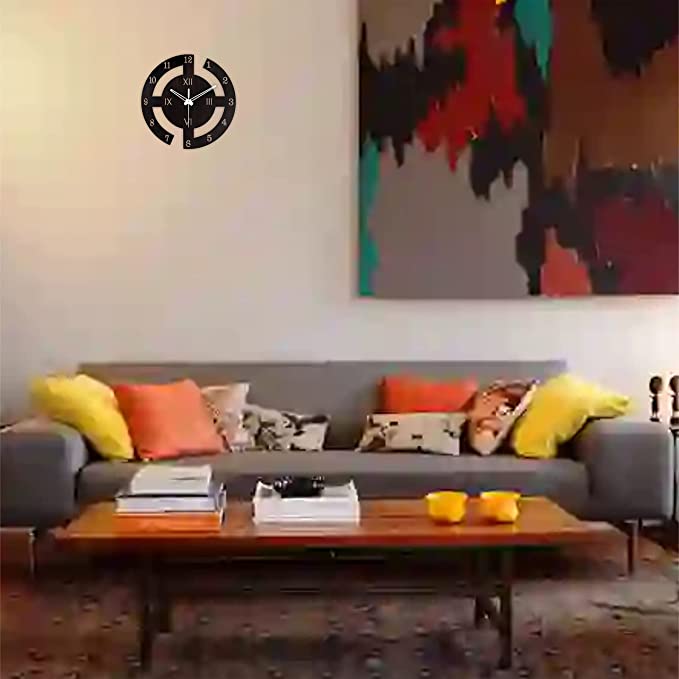Amazon Brand – Solimo Wood Abstract 12″ Silent Movement Wall Clock (Sheer Black Frame)