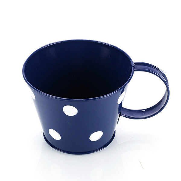 Description :A beautiful small polka cup pot which can be used as a decor and as a planter! Use it in your living room or balcony, it will just about anywhere!Specifications :Material : MetalColor : MultiProduct Size : 5 x 3 InchesHandmade & hand painted