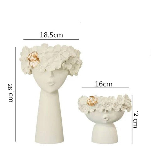 These table planters are handcrafted in resin. Available in sets of 2 in two different color sets- white & gold.Dimensions: Large Pot-18.5X15X28cm & Small Pot: 16X14X12cm.The unique and aesthetic design makes it one of a kind table decor. You can add fresh flowers but it looks equally attractive when kept on its own.The Artment sends the Surreal Faces Table Planters in triple-layered bubble wrapped packaging, so that your purchase remains safe in transit.Wipe it clean with a dry cotton cloth or micro fiber cloth. Handle with care as this is a fragile item.The Surreal Faces Table Planters is a one-of-a-kind display piece for plants with beautifully crafted faces on it. The skill and design of this product are unmatched as we can see from its surreal beauty.