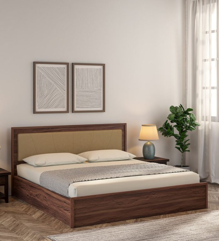 Yuko King Size Upholstered Bed With Storage In Columbia Walnut Finish